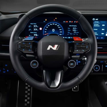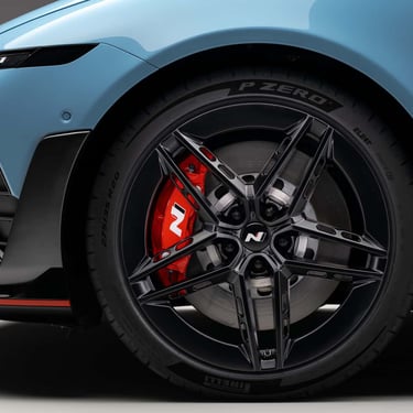 Hyundai didn’t just throw power at this thing, though. Engineers tweaked the suspension geometry, chassis stiffness, and adaptive dampers that react to road conditions in real time. Want to have some fun? N Torque Distribution lets you tweak power delivery, while N Drift Optimizer helps you hold slides like a pro. And when it’s time to stop, massive 15.7-inch front and 14.1-inch rear brakes (with four-piston calipers up front) bring things to a halt, while 20-inch Pirelli P-Zero 5 tires keep it glued to the pavement.