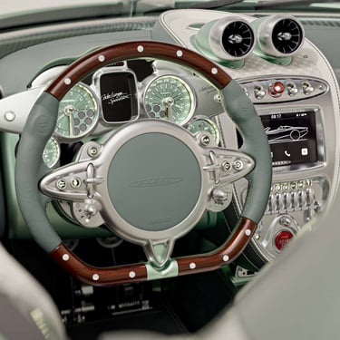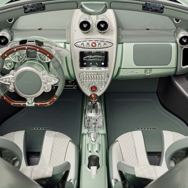 The styling? Less carbon-fiber overload, more retro elegance. The cabin features a cool embroidered pattern mimicking Pagani’s signature quad exhaust, plus mahogany trim on the steering wheel and shifter for that old-school racer vibe.