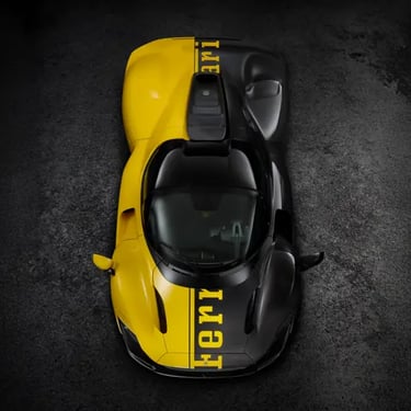 Bold, One-of-a-Kind Design – Wrapped in exposed carbon fiber and Giallo Modena yellow, featuring Ferrari’s first-ever painted logotype.